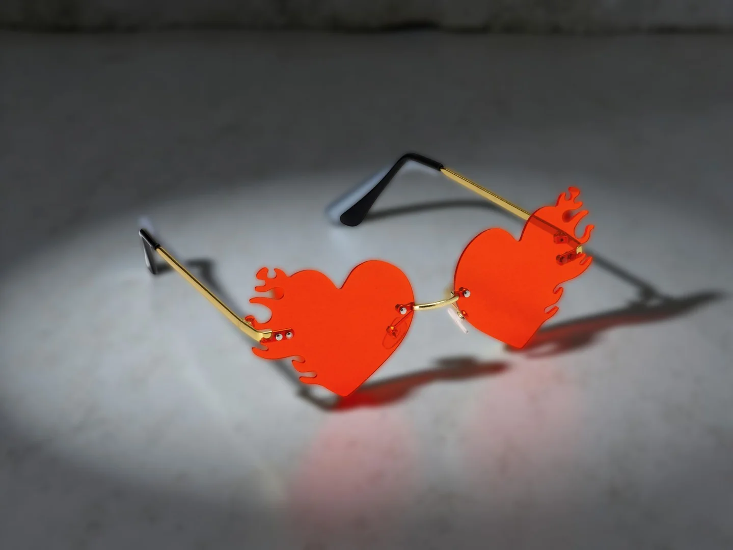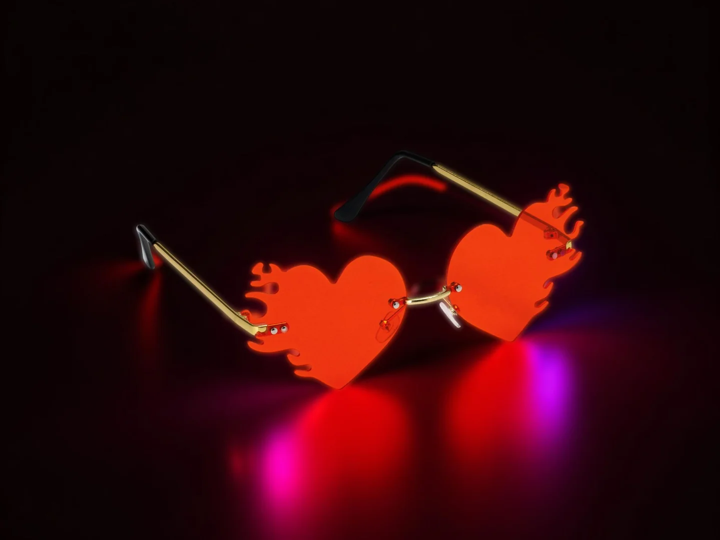 Unique Flame Design : Stand out with bold, heart-shaped flame lenses in a striking red tint — perfect for a fiery, fun statement look.